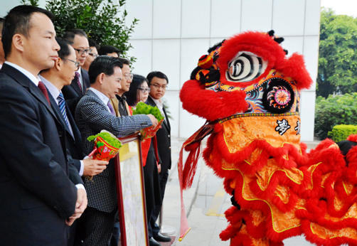 上午8點(diǎn)08分,志高集團(tuán)董事局主席兼總裁李興浩率領(lǐng)一眾公司高層領(lǐng)導(dǎo)出席了醒獅采青儀式,一對(duì)活靈活現(xiàn)的醒獅聞聲而舞,翻跟斗、采青,惟妙惟肖的醒獅表演獲得滿堂喝彩。舞獅寓意吉祥、如意和安康;采青表演寓意百尺竿頭、更進(jìn)一步。隨后,盛裝的“財(cái)神爺”