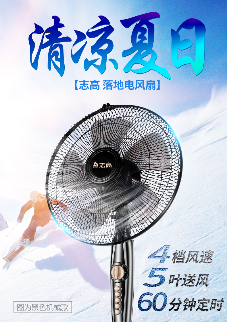 志高家用机械遥控定时静音落地扇