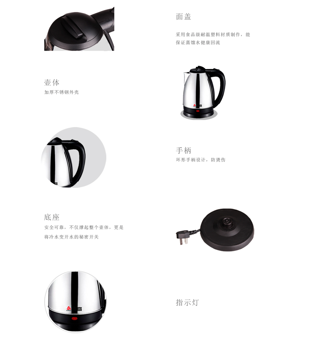 • 自动断电、防干烧、超温熔断器三重安全保护